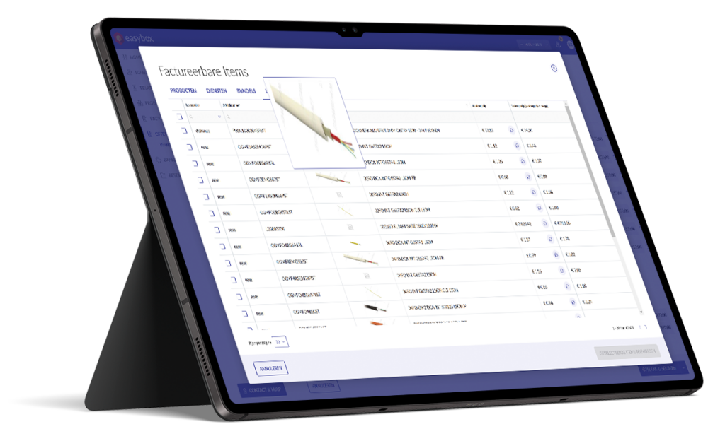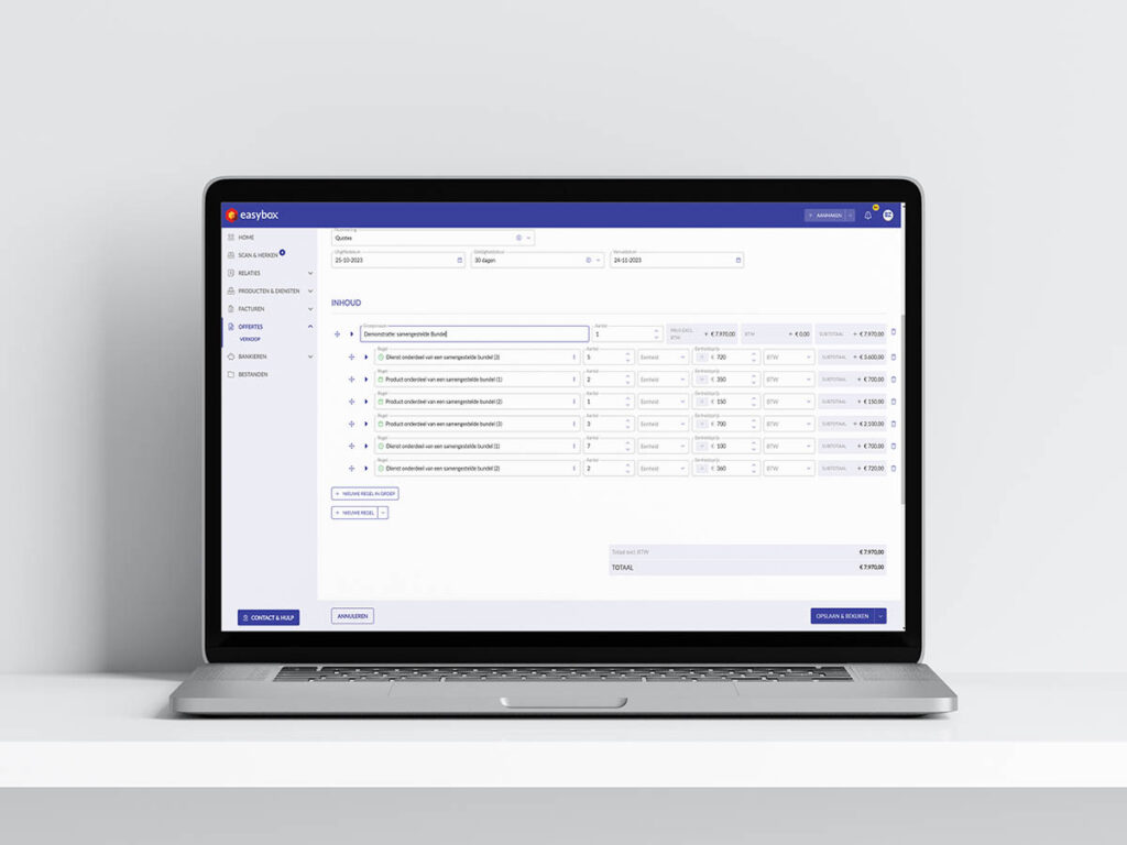 Dans Easybox, vous créez tous les documents de vente courants sur la base d’un travail existant ou entièrement nouveau. Grâce à la prise en charge du PDF, de l’UBL, de plusieurs langues, de plusieurs devises et de votre propre design personnalisé pour chaque type de document, vous pouvez désormais envoyer vos factures comme vos clients le souhaitent. Rapidement et facilement.